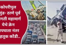 कोपरीपुल मुलुंड- ठाणे पूर्व द्रुतगती महामार्ग येथे क्रेन अपघाता नंतर वाहतूक कोंडी..