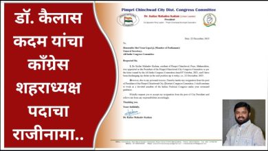 डॉ. कैलास कदम यांचा काँग्रेस शहराध्यक्ष पदाचा राजीनामा..