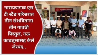 नारायणगाव एस टी स्टैंड परिसरात तीन संशयितांना तीन गावठी पिस्तुल, नऊ काडतूसासह केले जेरबंद..