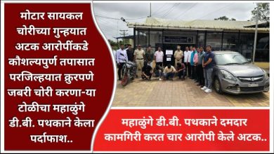 मोटार सायकल चोरीच्या गुन्हयात अटक आरोपींकडे कौशल्यपुर्ण तपासात परजिल्हयात क्रुरपणे जबरी चोरी करणा-या टोळीचा महाळुंगे डी.बी. पथकाने केला पर्दाफाश..