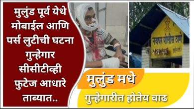 मुलुंड पूर्व येथे मोबाईल आणि पर्स लुटीची घटना गुन्हेगार सीसीटीव्ही फुटेज आधारे ताब्यात..