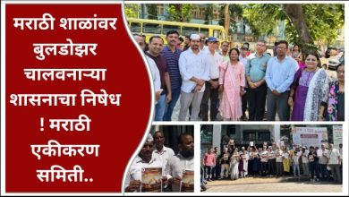 मराठी शाळांवर बुलडोझर चालवनार्या शासनाचा निषेध ! मराठी एकीकरण समिती..