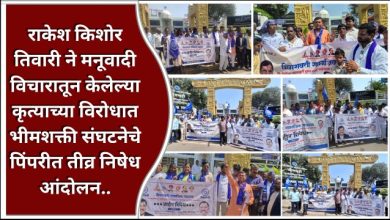 राकेश किशोर तिवारी ने मनूवादी विचारातून केलेल्या कृत्याच्या विरोधात भीमशक्ती संघटनेचे पिंपरीत तीव्र निषेध आंदोलन..
