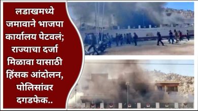 लडाखमध्ये जमावाने भाजपा कार्यालय पेटवलं; राज्याचा दर्जा मिळावा यासाठी हिंसक आंदोलन, पोलिसांवर दगडफेक..
