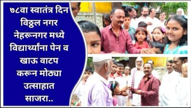 ७८वा स्वातंत्र दिन विठ्ठल नगर नेहरूनगर मध्ये विद्यार्थ्यांना पेन व खाऊ वाटप करून मोठ्या उत्साहात साजरा..