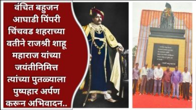 वंचित बहुजन आघाडी पिंपरी चिंचवड शहराच्या वतीने राजश्री शाहू महाराज यांच्या जयंतीनिमित्त त्यांच्या पुतळ्याला पुष्पहार अर्पण करून अभिवादन..