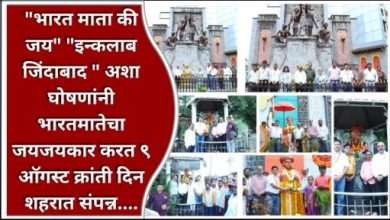 “भारत माता की जय” “इन्कलाब जिंदाबाद ” अशा घोषणांनी भारतमातेचा जयजयकार करत ९ ऑगस्ट क्रांती दिन शहरात संपन्न….