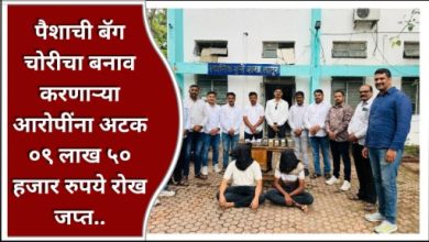 पैशाची बॅग चोरीचा बनाव करणाऱ्या आरोपींना अटक ०९ लाख ५० हजार रुपये रोख जप्त..