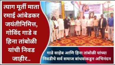 त्याग मूर्ती माता रमाई आंबेडकर जयंतीनिमित्त, गोविंद गाडे व हिना तांबोळी यांची निवड जाहीर..