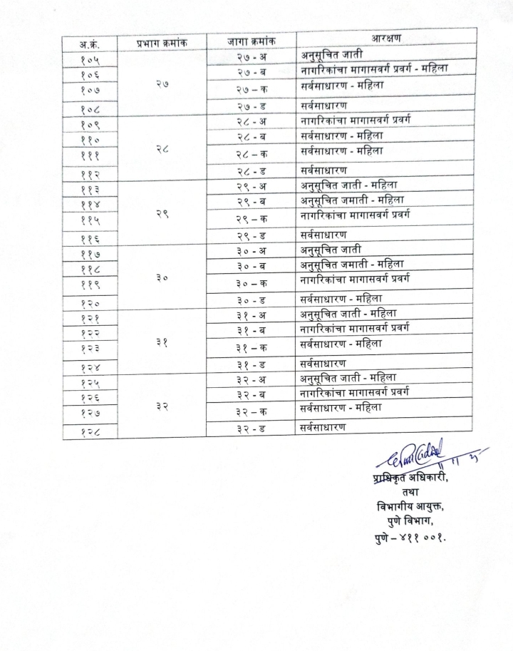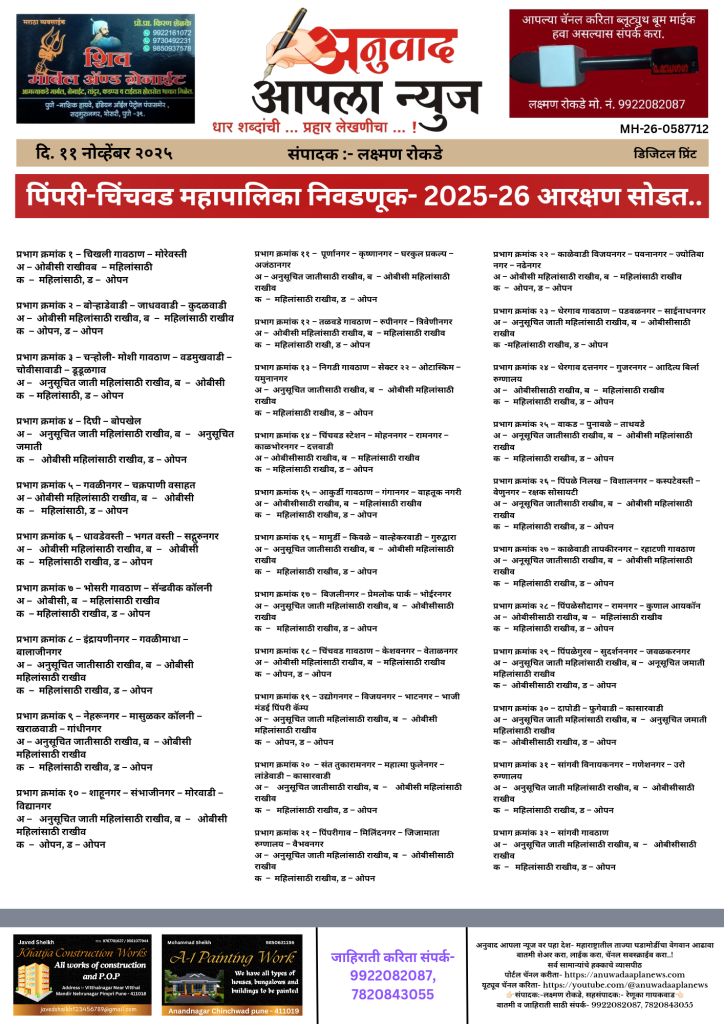 प्रतिनिधी पिंपरी-चिंचवड दि. १२ नोव्हेंबर २०२५ पिंपरी चिंचवड महापालिकेच्या नियोजित सार्वत्रिक निवडणुकीच्या अनुषंगाने आरक्षण सोडत प्रक्रिया काल चिंचवड येथील प्रा. रामकृष्ण मोरे प्रेक्षागृह येथे संपन्न झाली. राज्य निवडणूक आयोगाने या आरक्षण सोडतीच्या कामासाठी पुणे विभागीय आयुक्त डॉ. चंद्रकांत पुलकुंडवार यांची प्राधिकृत अधिकारी म्हणून नियुक्ती करण्यात आली होती. त्यांच्या नियंत्रणाखाली सदर आरक्षण सोडत प्रक्रिया पूर्ण झाली.
