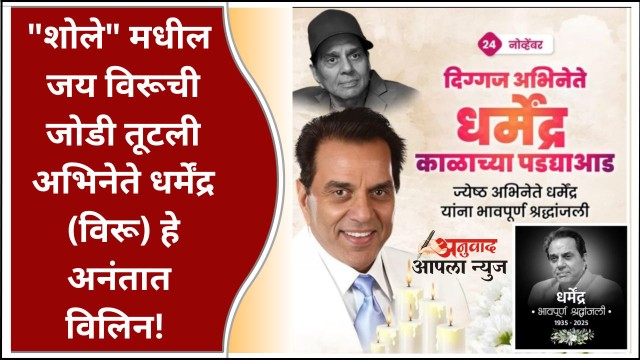शोले मधील जय विरूची जोडी तूटली अभिनेते धर्मेंद्र (विरू ) हे अनंतात विलिन!