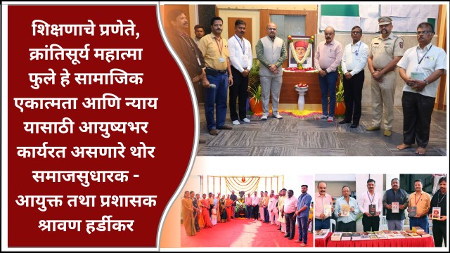 शिक्षणाचे प्रणेते, क्रांतिसूर्य महात्मा फुले हे सामाजिक एकात्मता आणि न्याय यासाठी आयुष्यभर कार्यरत असणारे थोर समाजसुधारक – आयुक्त तथा प्रशासक श्रावण हर्डीकर
