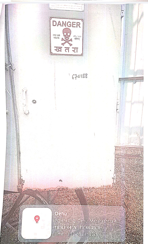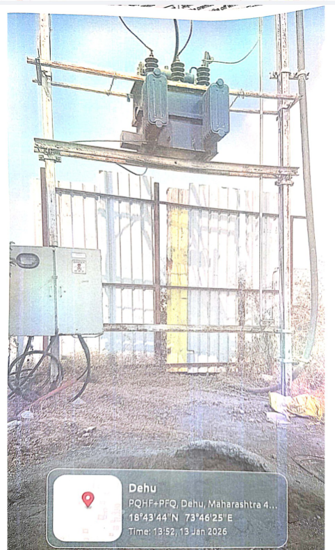 ४) रॉयल लॅण्ड डेव्हलपर्स, ओवी तिर्थ होम्स, देहूगांव या बांधकाम व्यवसासिकास नवीन विज योजनेअंतर्गत विद्युत रोहित्र दिले आहे व विद्युत रोहित्र बसविण्यासाठी लागणारी जागा बांधकाम व्यवसायिकाकडून न घेता आर्थिक तडजोड करुन विद्युत रोहित्र सरकारी जागेवर बसविण्यात आलेले आहे.