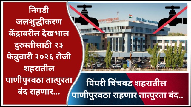 या कामांसाठी सोमवार, दिनांक २३ फेब्रुवारी २०२६ रोजी निगडी जलशुद्धीकरण केंद्रावरून होणारा पाणीपुरवठा बंद ठेवण्याचे नियोजन करण्यात आले आहे. त्यामुळे सोमवार, दिनांक २३/०२/२०२६ रोजी पिंपरी-चिंचवड शहरातील सर्व भागांचा संध्याकाळचा पाणीपुरवठा पूर्णतः बंद राहणार आहे.