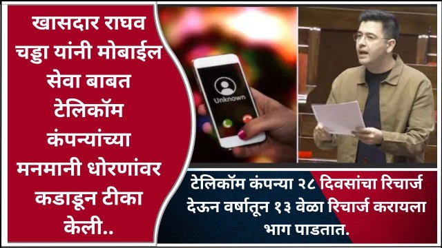 प्रतिनीधी सतिश पाटील मुंबई दि. ०३ एप्रिल २०२६ आम आदमी पार्टीचे खासदार राघव चड्ढा यांनी राज्यसभेत प्रीपेड मोबाईल ग्राहकांच्या हक्कांचा मुद्दा उचलत, रिचार्ज संपल्यानंतर इनकमिंग कॉल आणि एसएमएस बंद करण्याच्या टेलिकॉम कंपन्यांच्या मनमानी धोरणांवर कडाडून टीका केली आहे. रिचार्ज संपल्यावरही इनकमिंग सेवा सुरू ठेवण्याची आणि २८ दिवसांऐवजी महिन्याचा प्लॅन देण्याची मागणी त्यांनी केली.