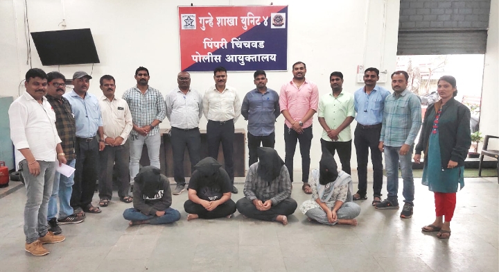 पुणे येथील खराड़ी तसेच विमाननगर परिसरात बनावट प्लेसमेंट ऑफिस मार्फ़त आय. टी. कंपनी मधे नौकरी देण्यासाठी 60 ते 70 व्यक्ति कडून गूगल पे, कैश, फ़ोन पे या मार्फ़त लाखोंची रक्कम जमा करण्याचा यांचावर आरोप आहे. भोसरी पुलिस स्टेशन येथे गुन्हा नोंद होता. गुन्हाचे गंभीर्य ओळख़ून पोलिस आयुक्त विनयकुमार चोबे यांनी गुन्हे यूनिट 4 कड़े ही कामगिरी सोपवण्यात आली गुन्हे यूनिट 4 तापसा अंती 4 आरोपीना पकड़ले आहे. आरोपी महेशकुमार हरिचंद्र कोळी (रा. सोमवार पेठ वय 34 वर्ष ) अनुदीप चंद्रकांत पशुपति उर्फ़ शर्मा ( रा. वघोली वय 54 वर्ष ) महिला आरोपी कल्पना मारूतराव बकाल (रा. दिघी वय 30 वर्ष ) आणि श्रावण एकनाथ शिंदे (रा. वाघोली वय 32 वर्ष ) यांना अटक करण्यात आली आहे. पूढील तपास गुन्हे शाखेच्या यूनिट 4 करत आहे.