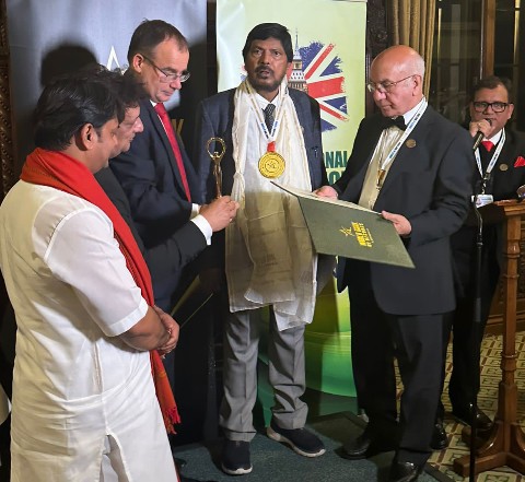 लंडनच्या पार्लमेंटमध्ये वर्ल्ड बुक ऑफ रेकॉर्ड तर्फे आज ना. रामदास आठवले यांचा डॉ.भीमराव आंबेडकर अवॉर्ड २०२३ या आंतरराष्ट्रीय पुरस्काराने गौरव करण्यात आला त्यावेळी ना. रामदास आठवले बोलत होते.