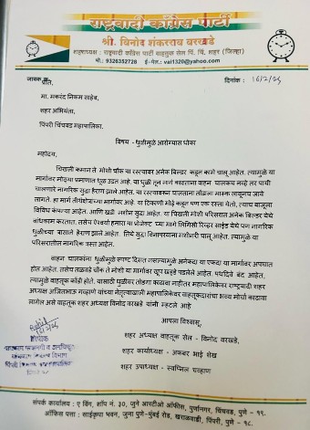 सदर निवेदन देतांना पिंपरी चिंचवड शहर (जिल्हा) वाहतूक सेल अध्यक्ष विनोद वरखडे, वाहतूक सेल कार्याध्यक्ष अकबर शेख, वाहतूक सेल उपाध्यक्ष स्वप्निल चव्हाण उपस्थित होते.
