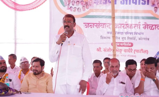 महाविकास आघाडीचे अधिकृत उमेदवार संजोग वाघेरे पाटील यांच्या प्रचारार्थ कळंभ जिल्हापरिषद, कावोळे व गौर कामत विभागातील नागरिकांशी कडाव येथील श्री. स्वामी समर्थ मंगल कार्यालय येथे संवाद मेळावा पार पडला. त्या वेळी ते बोलत होते. या मेळाव्याप्रसंगी शेतकरी कामगार पक्षाचे तालुका चिटणीस रामशेठ राणे, माजी समाज कल्याण सभापती नारायण डामसे, तालुका प्रमुख उत्तम कोळंबे, उपजिल्हाप्रमुख नितीन सावंत, काँग्रेसचे कर्जत तालुका अध्यक्ष संजय गवळी, रायगड जिल्हा महिला आघाडीच्या प्रमुख सुवर्ण जोशी, काँग्रेसचे ज्येष्ठ नेते दिनानाथ देशमुख, आपचे डॉ. रियाज पठाण, कळंब ग्रामपंचायत सरपंच प्रमोद कोडलीकर, हुतात्मा पाटील, भाई कोतवाल, पंचायत समितीचे माजी उपसभापती जयवंती हिंदोला, जांमरुखचे सरपंच दत्तूशेठ पिंपरकर, माजी उपसभापती पंढरीनाथ राऊत, काँग्रेसचे ज्येष्ठ नेते दिनानाथ देशमुख, कर्जत कृषी उत्पन्न बाजार समितीचे संचालक तानाजी मते, कर्जत पंचायत समितीचे उपसभापती यशवंत जाधव, माई कोतवाल, हिराजी पाटील, आदिवासी संघटनेचे तालुकाध्यक्ष गोविंद ठोंबरे, महिला तालुका संघटक करुणा बडेकर, माजी पंचायत समिती सदस्य अंजली शिंदे यांच्यासह ग्रामस्थ, ज्येष्ठ नागरिक, महिला वर्ग, युवक-युवती यांच्यासह महाआघाडीचे पदाधिकारी व कार्यकर्ते मोठ्या संखेने उपस्थित होते.