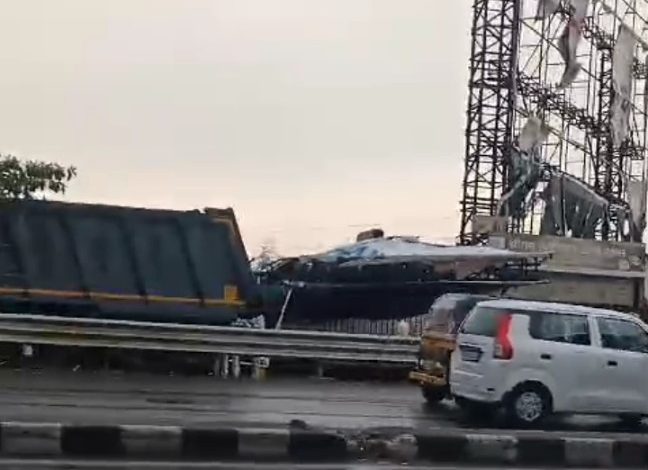 पिंपरी चिंचवड दि. १७ मे २०२४ काल दि. १६ मे २०२४ रोजी स्पाईन रोड मोशी येथील जयगणेश साम्राज्य चौकातील अधिकृत परवानगी असणारे २० बाय ४० फुट आकाराचे होर्डींग आज पाऊस व वाऱ्यामुळे रस्त्यावर उभ्या असणाऱ्या टेम्पोवर पडले असून त्यामध्ये कोणतीही जिवीत हानी झाली नाही.