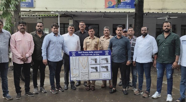 २,०२,००० रु. किंमतीचे ०४ पिस्टल, ०४ काडतुसे व ०४ रिकाम्या पुंगळया तसेच १०,७५,००० रु किंमतीचे सोन्याचे व चांदीचे