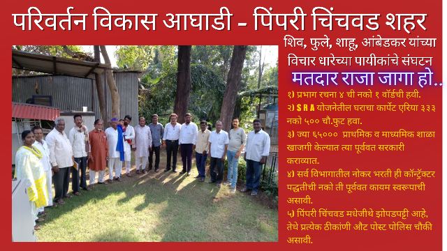 या बैठकीसाठी कसले ही कारण न सांगता वेळेवर उपस्थित राहुन मार्गदर्शन करावे. अशी विनंती परिवर्तन विकास आघाडीच्या पदाधिकार्यांच्यावतिने करण्यात आली आहे.