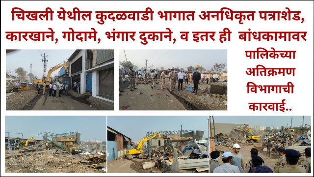 चिखली येथील कुदळवाडी भागात अनधिकृत पत्राशेड, कारखाने, गोदामे, भंगार दुकाने, अशा २२२ बांधकामावर पालिकेच्या अतिक्रमण विभागाची कारवाई..