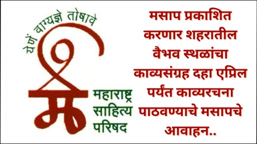 मसाप प्रकाशित करणार शहरातील वैभव स्थळांचा काव्यसंग्रह दहा एप्रिल पर्यंत काव्यरचना पाठवण्याचे मसापचे आवाहन..