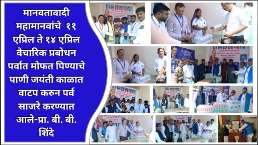 मानवतावादी महामानवांचे ११ एप्रिल ते १४ एप्रिल वैचारिक प्रबोधन पर्वात मोफत पिण्याचे पाणी जयंती काळात वाटप करुन पर्व साजरे करण्यात आले-प्रा. बी. बी. शिंदे
