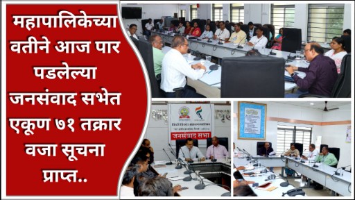 महापालिकेच्या वतीने आज पार पडलेल्या जनसंवाद सभेत एकूण ७१ तक्रार वजा सूचना प्राप्त..