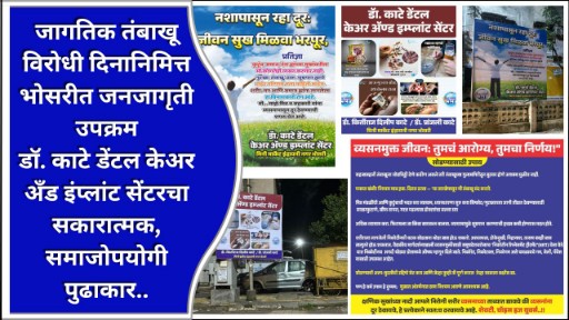 जागतिक तंबाखू विरोधी दिनानिमित्त भोसरीत जनजागृती उपक्रमडॉ. काटे डेंटल केअर अँड इंप्लांट सेंटरचा सकारात्मक, समाजोपयोगी पुढाकार..