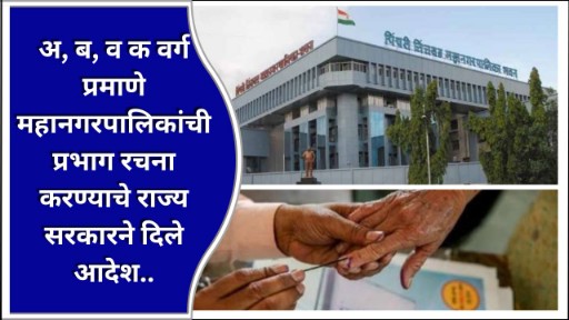 अ, ब, व क वर्ग प्रमाणे महानगरपालिकांची प्रभाग रचना करण्याचे राज्य सरकारने दिले आदेश..