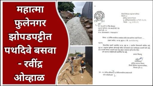 अखेर मागील आठवड्यात पिंपरी चिंचवड मनपाच्या “झोनीपु” विभागाने महात्मा फुले नगर झोपडपट्टीत रस्ता, पाणी, स्वच्छता व मल निसारण वाहिनी या नागरी सुविधा पुरविल्या आहेत. त्याबद्दल रवींद्र ओव्हाळ व महात्मा फुले नगर झोपडपट्टीतील रहिवाशांनी मनपाचे आभार मानले आहेत. तसेच येथे आता लवकरात लवकर पथदिवे तसेच अंतर्गत भागात विजेचे दिवे लावून रहिवाशांना दिलासा द्यावा अशी ही मागणी रवींद्र ओव्हाळ यांनी केली आहे.