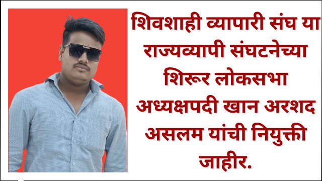 शिवशाही व्यापारी संघ या राज्यव्यापी संघटनेच्या शिरूर लोकसभा अध्यक्षपदी खान अरशद असलम यांची नियुक्ती जाहीर.