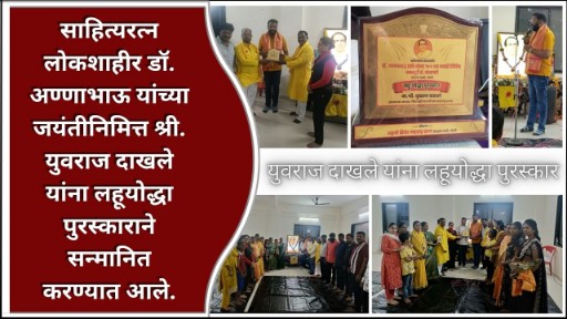 साहित्यरत्न लोकशाहीर डॉ. अण्णाभाऊ यांच्या जयंतीनिमित्त श्री. युवराज दाखले यांना लहूयोद्धा पुरस्काराने सन्मानित करण्यात आले.