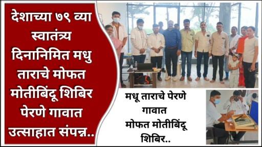 प्रतिनिधी पेरणे पुणे दि. १५ ऑगस्ट २०२५ मधु तारा दिव्यांग सेवा सोशल फाऊंडेशन महाराष्ट्र राज्य संस्थापक अध्यक्ष नितीनजी शिंदे यांच्या मार्गदर्शनाखाली मधु तारा हवेली तालुका प्रमुख सदाशिवराव ननावरे व मधु तारा हवेली तालुका महिला प्रमुख सौ. स्वर्णलताताई ननावरे यांच्या आयोजनातून एच.व्हि. देसाई नेत्र रुग्णालय हडपसर पुणे यांच्या सहकार्याने निवासा सोसायटी क्लब हाऊस पेरणे गाव तालुका हवेली जिल्हा पुणे येथे मोफत नेत्र तपासणी मोफत मोतीबिंदू शस्त्रक्रिया शिबिर आयोजित करण्यात आले.