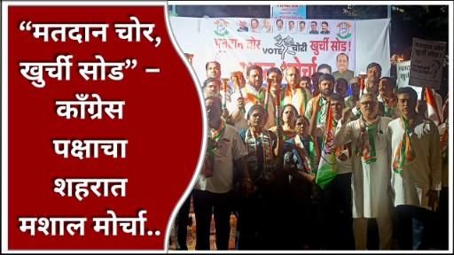 “मतदान चोर, खुर्ची सोड” – काँग्रेस पक्षाचा शहरात मशाल मोर्चा..