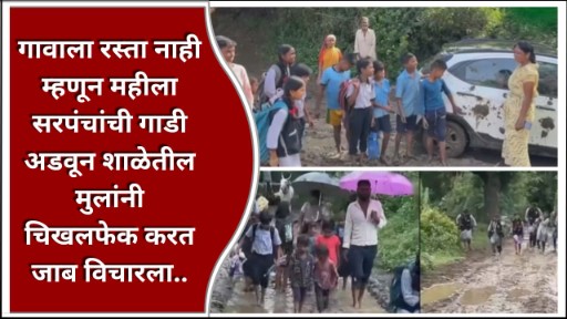 गावाला रस्ता नाही म्हणून महीला सरपंचांची गाडी अडवून शाळेतील मुलांनी चिखलफेक करत जाब विचारला..