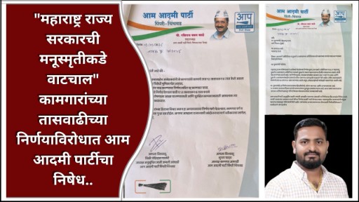 प्रतिनिधी पिंपरी-चिंचवड दि. ०९ सप्टेंबर २०२५ महाराष्ट्र राज्य सरकारने कारखाने अधिनियम १९४८ व महाराष्ट्र दुकाने व आस्थापना अधिनियमामध्ये सुधारणा करून कारखाने व दुकाने-आस्थापनांमधील कामगारांच्या कामाच्या तासांत वाढ करण्याचा घेतलेला निर्णय हा अन्यायकारक व कामगार विरोधी असल्याने आम आदमी पार्टीच्या अनुसूचित जाती-जमाती आघाडी व कामगार आघाडीकडून तीव्र निषेध करण्यात आला आहे.
