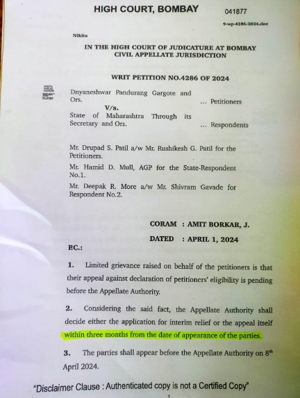 उच्च न्यायालयाचा आदेश – परिस्थिती जैसे थे ठेवून प्रशासनाला दहा जूनपर्यंत म्हणणे मांडण्याचे आदेश